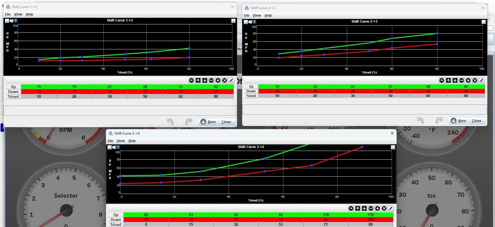 I also need to dial in my shift points. I have my WOT shift points set but I mean my part throttle shift points. "load" is TPS %.