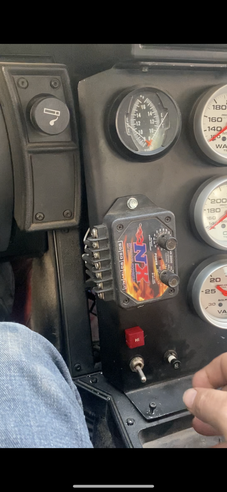 I then mounted the progressive controller, switches and relay. I used an aircraft 10A breaker instead of a simple fuse. The progressive control is an easy to use unit, with 20-50% N2O at initial activation, and build time up to 8 seconds. Tuning will be at the track, I am going to start with 25% and build to 100% at 3.5 seconds as a generic starting point.