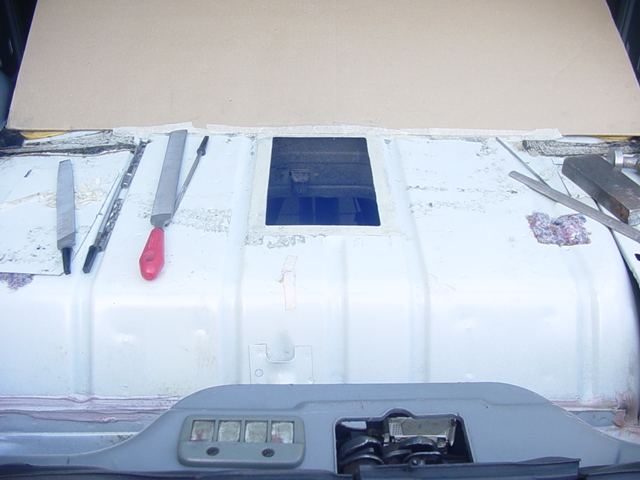 You can see how much further back the pump sender is, and also how much smaller you can make the hole, due to being able to disconnect the lines. You literally just need to make it big enough to get the top of the sender through.