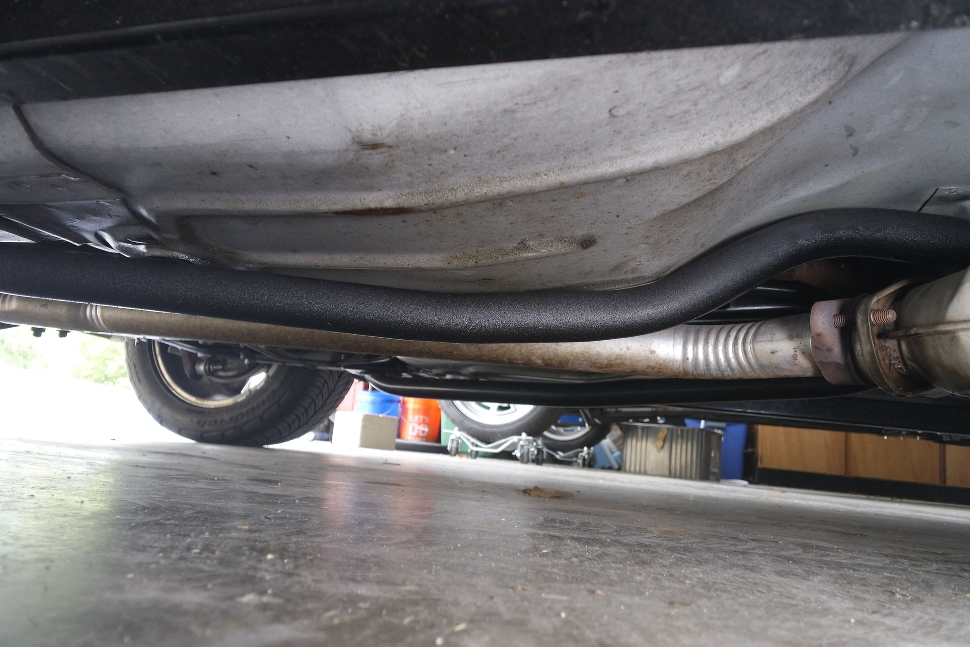 They fit perfect with no exhaust clearance issue, I just had to drop the 2 bolt connector @ the cat and it fit right in.. They tuck up tight I have only minimal scratches on them, I have had them on for 3 years now. Only 2 pieces so only needed to weld in 4 places. They are tubular. And the best is the ride I stated. It rides smoother, it goes over the RR tracks smoother It took alot of those creeks out when turning on rough surfaces and hitting the pot holes. It most definitely helped the handling by lessening the body roll.
