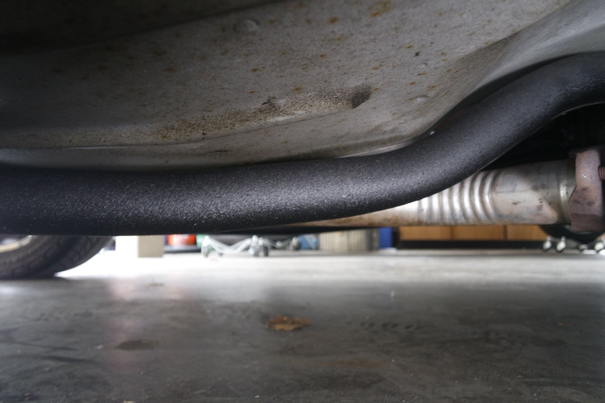 Now here is where the fun begins. I put the bar up, and the holes are a smidge off. I call TDS, Lon answers right away. Tell him my plight, he says file it. So I did. Now I understand why the other manufactures don't use the other holes. After filing to get some extra space needed, I had to juggle the bar around back and forth, like squeezing on a balloon. You move one side, then other side doesn't fit. Be sure to have a stick of wood and a rubber mallet handy if you do this install, because you will be moving the steering brace around until it fits just so. After everything was in place, there was zero tolerance to get the bushing brackets back up. the tabs fit, but with zero clearance. amazing that it went in, but it did. Here it is in place, when I thought I was almost done. Nope, had another 30 minutes of fiddling to get it in its proper place. Instructions say 15 min install, I'd say count on at least an hour if not two.