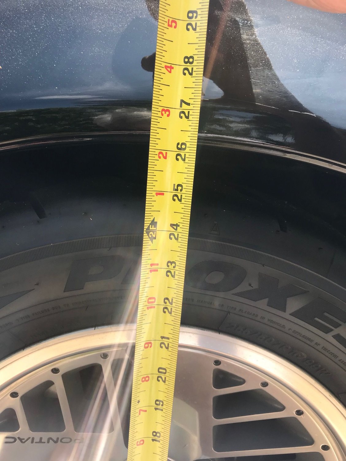 Some years ago I cut the rear springs to change the stance of the car. The rear lip is at about 26" now.
