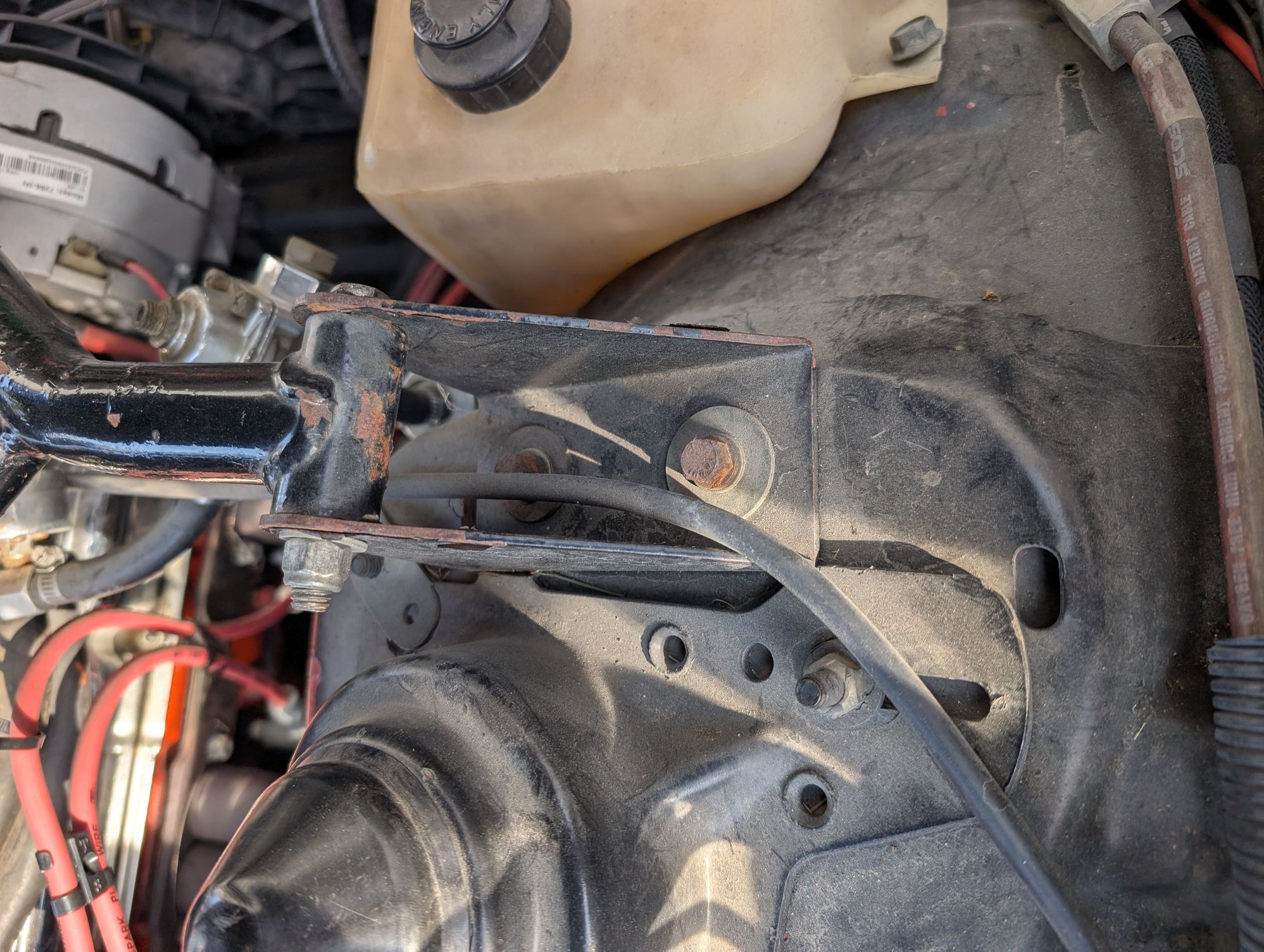 Yes to both, but the cut relief on the strut cap was to clear the Baer master cylinder. I had that welded in. I made a small cut in the STB bracket so the foot of the strut cap could slip underneath it.