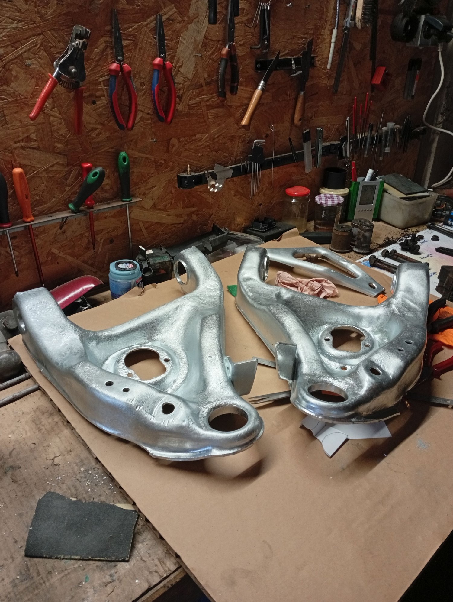 I did remove them before dropping down the engine cradle with an inside spring compressor, Bought 30$, but very efficient!!! I've been kindly surprised of this tool. Next step is to powder coating all parts and put them back to place. Pictures following asap