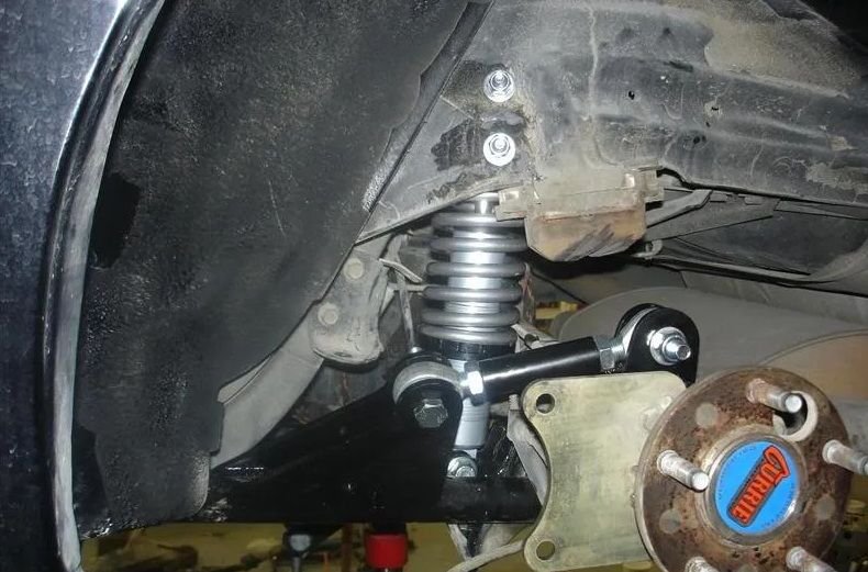 So after a lot of reading and calculating, it seems like the shock stroke is going to be the biggest issue. Most of the common coil over shocks have a stroke of 5 inches.