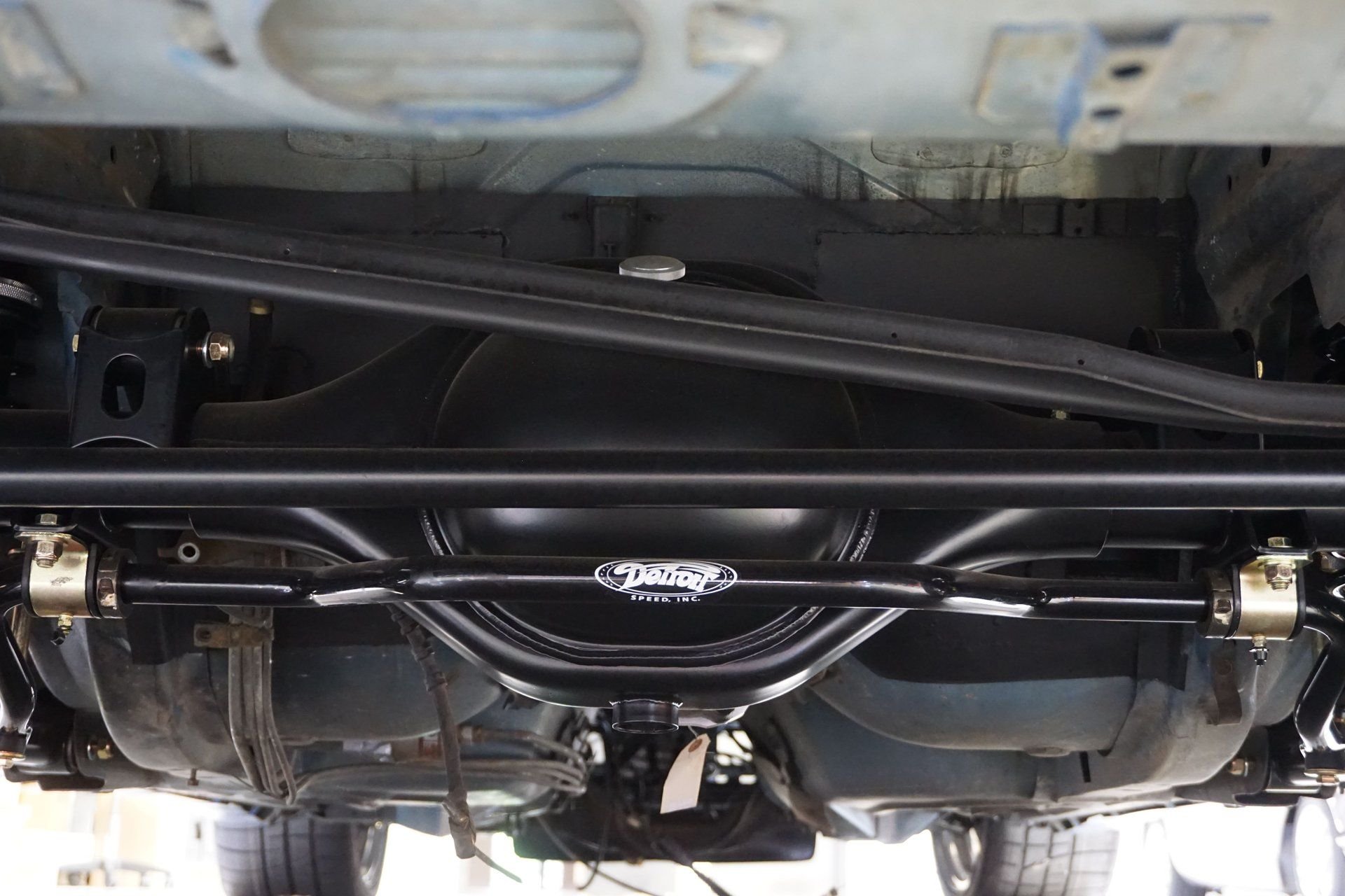 You can see how high we had to raise the engine to get the 302-3 oil pan sump to fit behind the K member cross bars.