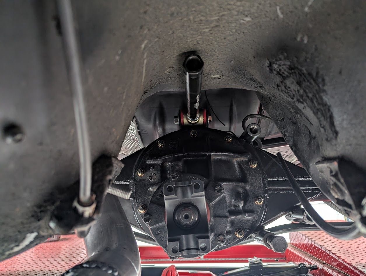 I'm on the fence about how to mount to the rear end. I could weld a mount to the top of the diff, but then I'd have to raise the body side significantly as you did.