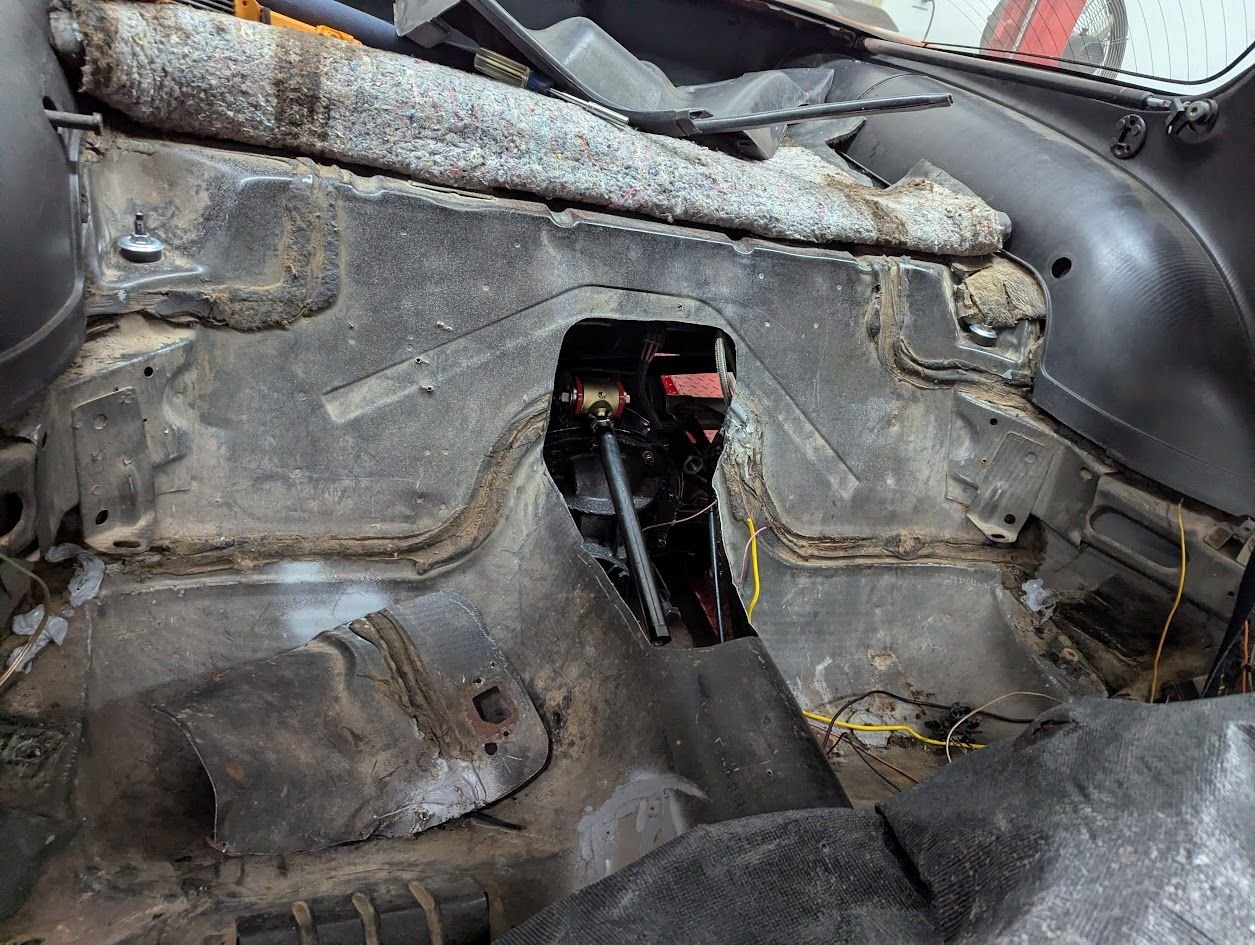 I think what I'm going to do is build a tunnel on the bench with some angle and 3/16 plate, test fit it a few times, then weld the mount to the bottom on the bench. Then I can weld the new tunnel in as a completed unit. Probably overlap the factory tunnel by several inches, roset weld it in a few spots, maybe through bolt where the seat mounts are, etc.