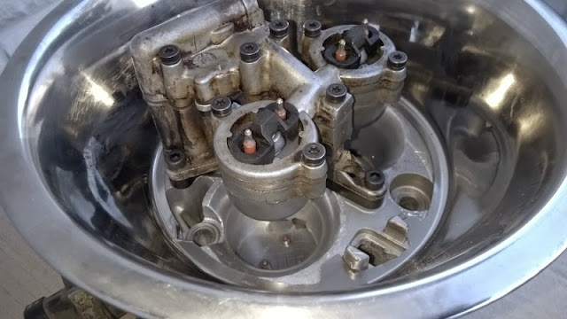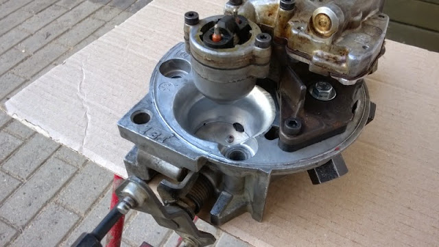 While at it maybe shave throttle shaft for both bores, I got little carried away and grinded little too much out, partially blame for poor lightning. Other bore has less than 1mm left and thus shaft rolls because of uneven left/right spring tension and blades seat to idle little uneven and some more for WOT.