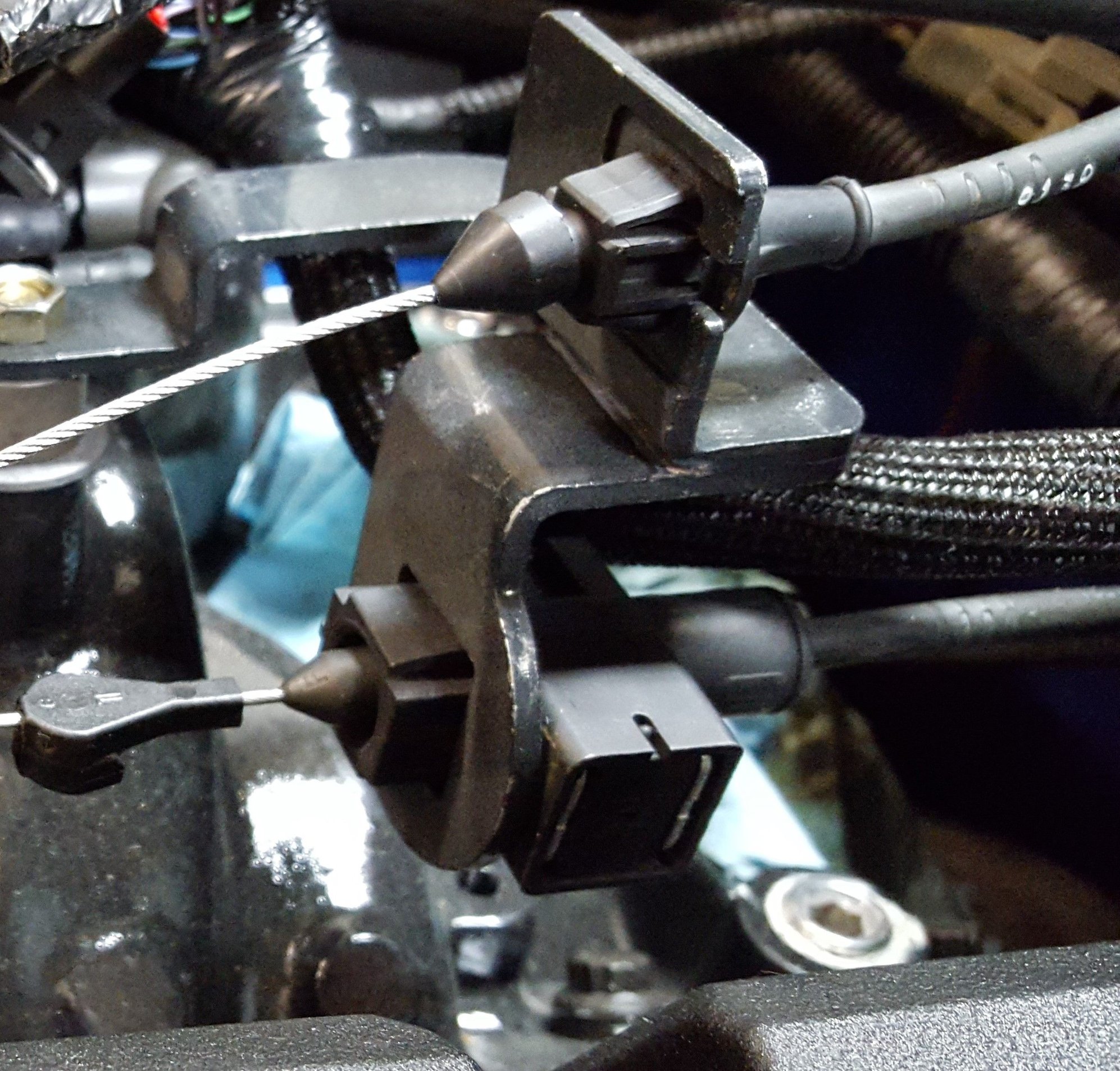 My second issue is that the TV cable isn't locking onto the bracket. On the Throttle cable, the bracket has a step that's thinner and lets that cable lock onto it, but my TV cable hole doesn't have that step and the metal is too thick for the tabs to lock onto the bracket. Did any of you have that problem?