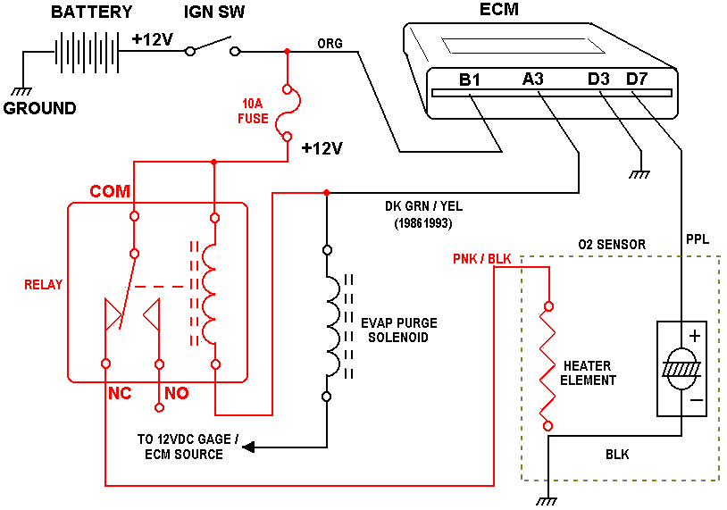 My o2 sensor heater is on all the time (Key Switched) the way i have it wired. I am debating to wire the heater to the ecm closed loop/open loop output as shown in Vader's Diagram. In my mind, the heating element will take a more than a split second to heat up and therefore be in open loop longer (until the o2 heats back up.)