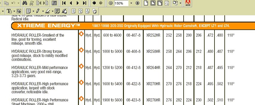 I was looking at the extreme energy roller cam series. I have a roller camshaft so I didn't have that many cams to choose from. I would go with the xe282 if its streetable...definetly more cam than the xe270. Unless you guys know some better cams. I will get 1.6 rockers to.