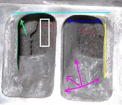 Open up the area at the {red arrow} between the "common wall" and the valve guide boss. Slim and streamline the guide boss.