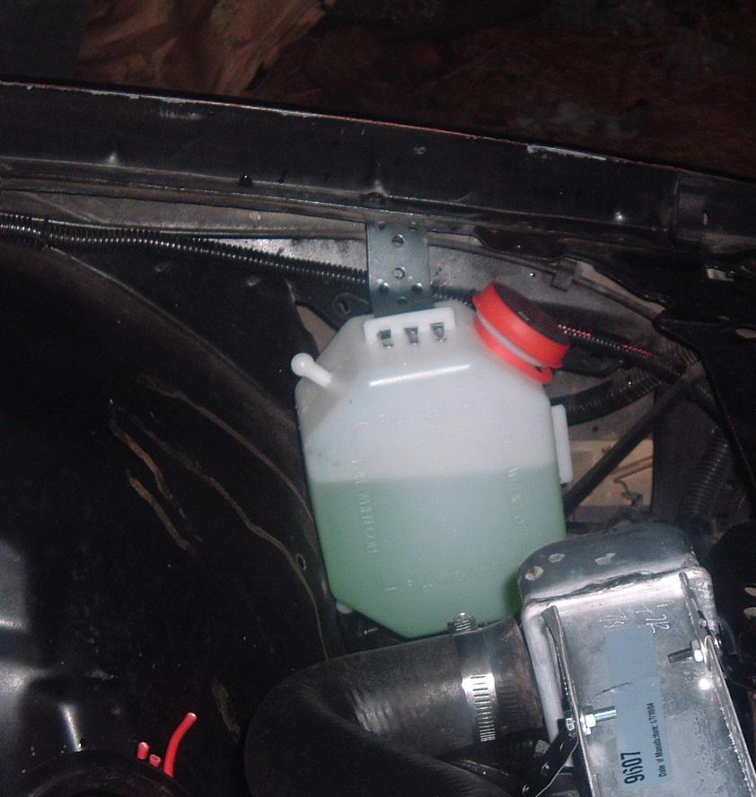 Ran a good rubber hose (not the thin windsheild washer stuff) from nipple on rad, to in front of rad, zip tied it to the core support, then through a hole in the side of the core support, behind headlight, and over to jug. You only see about 4-6" of the hose. The part that goes from the rad to the core support