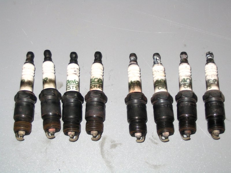 Do you mean the white stuff on the tip (top of the photo)? I think that's just from the stuff you put in the wire boot before putting it on the plug. The four plugs on the right did come from the left bank, but I probably just rubbed the stuff off of the other ones while spinning them out with my left hand.