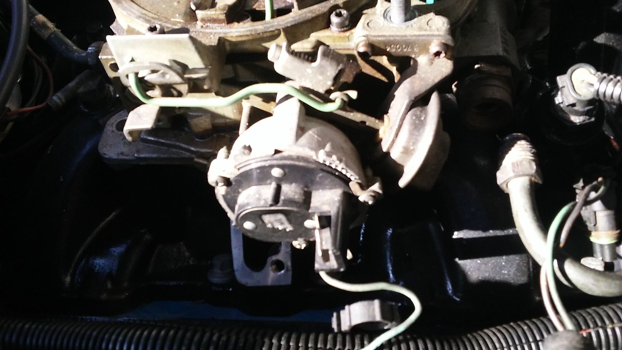 I read through the haynes manual that i bought and read that the timing is control partly through the EST, so i read how to bypass it. I think that i unplugged the right wire, right side of the brake booster/3 prong clip black/yellow wires. After i had done this i started the car, great start and idled alot better than it had before (before it was hit or miss, sometimes it would idle, others it would stall) so i let it run about 30 seconds. The idle started out fine, and then dropped to a rough idle. So after running it i turned it off and tried 2 more times....same effect great start and initial idle, but rough idle after about 5-10 seconds. So i decided to reconnect the plug and try my luck. With the connector plugged back in it would start great, idle fine for 5-10 seconds then begin with a rough idle. It does this now very consistanly, which is very odd considering before it would simply sputter out of life, or have a very rough struggling idle.