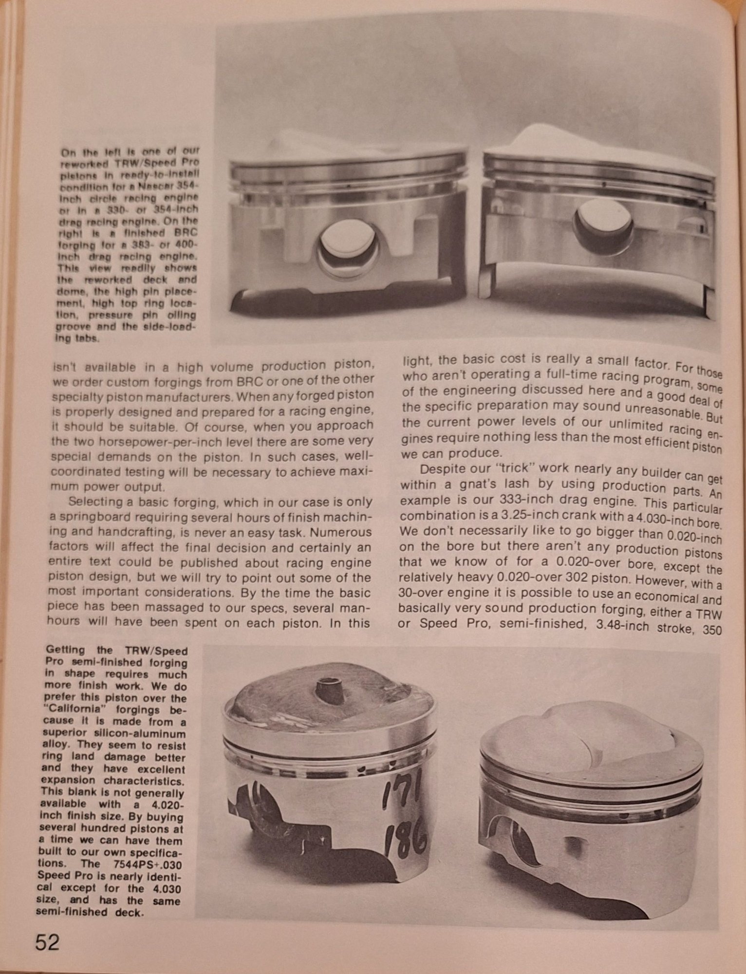 So today I'm going through a book The Chevrolet Racing Engine by Bill Jenkins and on page 52 he gives a part number it's very close to the pistons that he uses in his race engines. I get on Google to check the part number and voila here we are on the Thirdgen site talking about your pistons. The book is by SA Design and copyright dated 1976.
