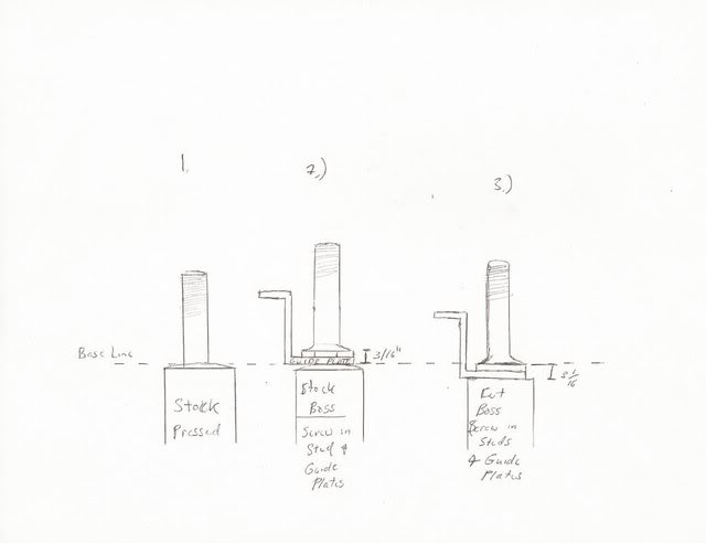 If geometry is perfect without the plates then adding the plates doesn't change the geometry. All it does is move the rocker stud up higher. If the rocker can't go down far enough on the stud then the stud bosses will need to be milled down so the plates give a same stud height as installing the studs without the plates.