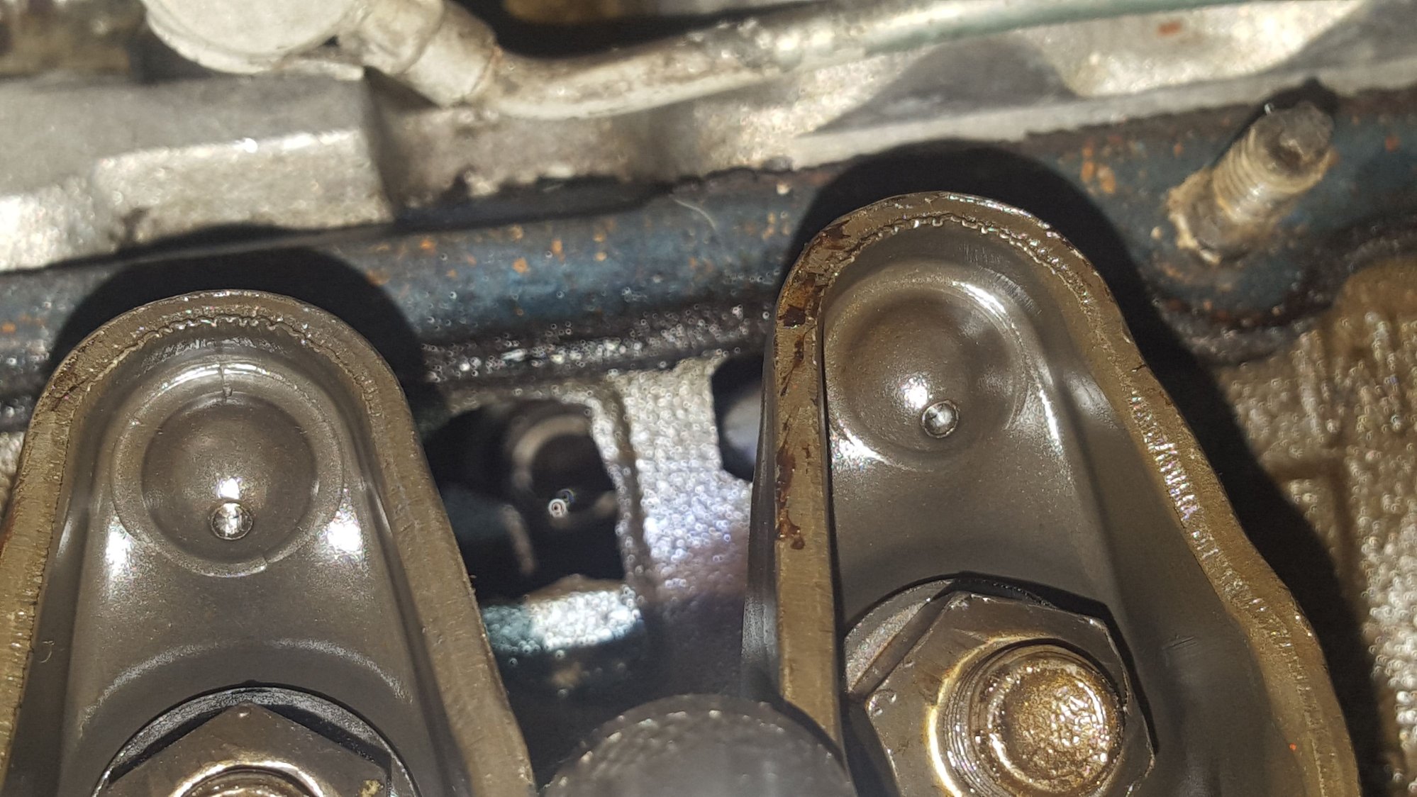 I'll check under the valve covers. I changed the oil and filter approximately 1 month before recording this video. This is the second start up since the oil change.