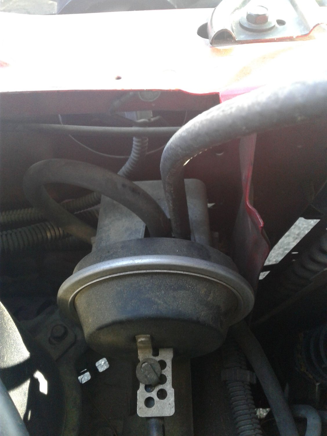 Cruise control diaphragm. When it is actuated, vacuum pulls in, and the cable pulls on the throttle body.