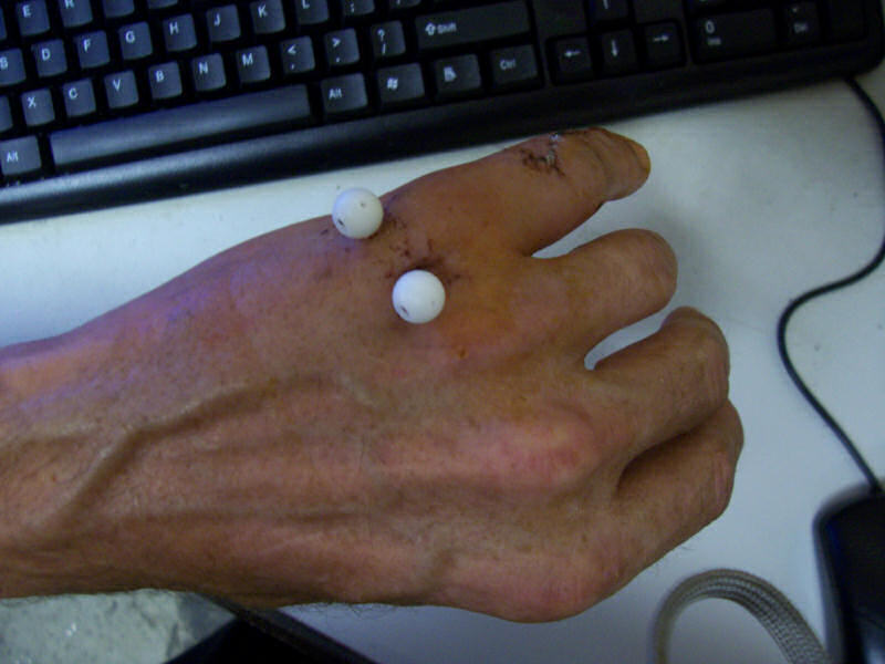 Not an angle grinder, but a bar feeder on a chucker/screw machine. When it was reattached they K-wired the bone in place, so I still have my member.