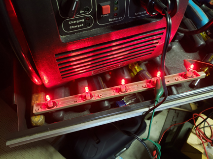 These LED's have built-in current limiting resistors so there's no runaway current going through the harness. Hopefully, someday I'll locate a bench top variable power supply at a garage sale.