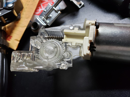 I poked at the switch tab and it instantly stared to work, but was laboring and sluggish. I removed the assembly, separated the main parts, found the factory grease a hard, sticky, waxy mess. Cleaned the gearbox and motor, re-assembled and re-installed it.