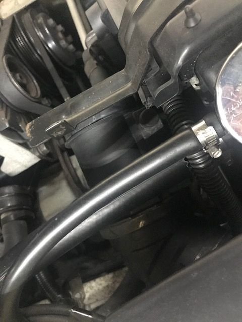 The clamp is a Oetiker one ear stepless clamp 87.5. It is a one use only clamp so you can use this information to order a new clamp. I just ordered 5 and when they come in I will follow-up on this forum to summarize fit, quality, OEM look