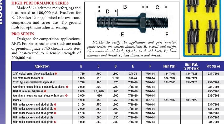 As for length, you'll have to take that measurement of yours and go through ARPs catalogue (my rocker stud of choice) or whoever your preferences is. I don't have my online catalogue handy at the moment. I've been down this road before you.