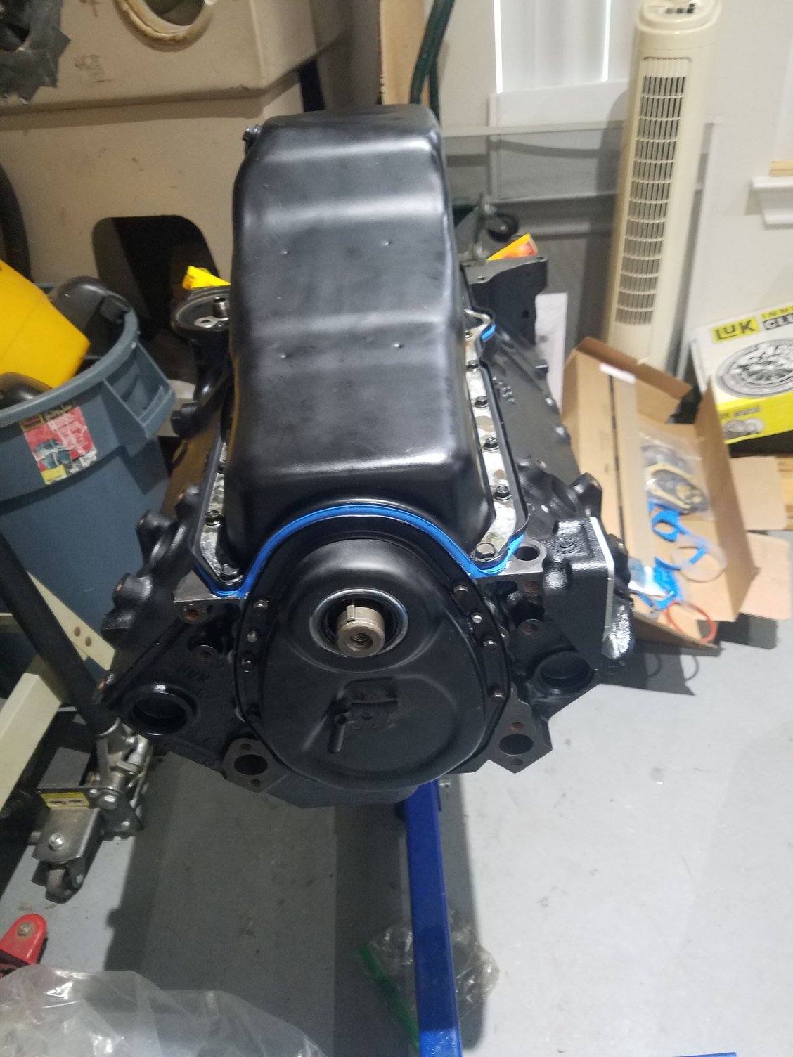 Once the pan was ready to go on, I kept looking around in surprise, figuring I MUST have left parts lying around somewhere! Couldn't find any, so that must mean the bottom end is done.