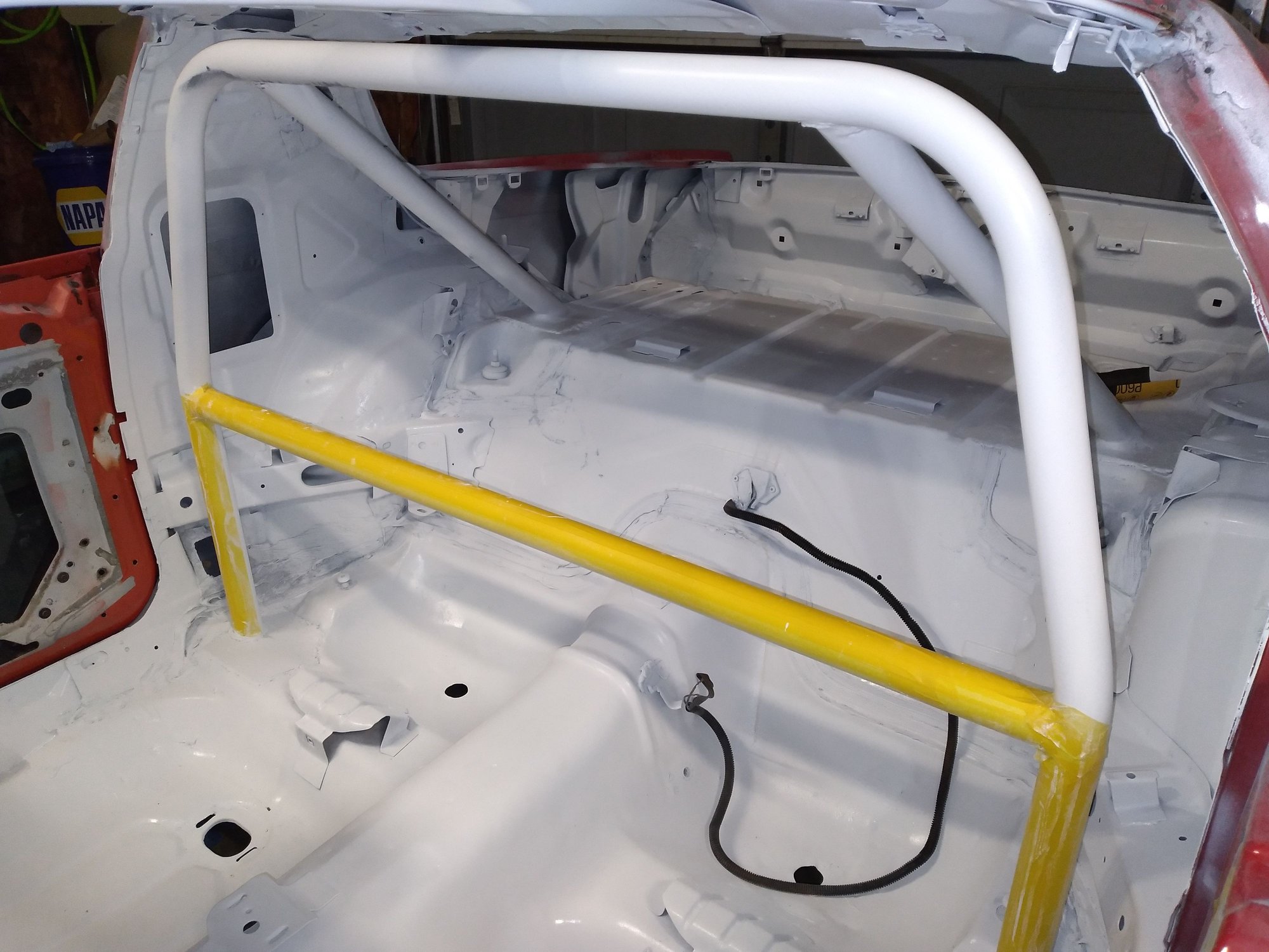 Basically, the roll bar is cosmetic. 4 point roll bar still won't allow you to run quicker than 13.0 in the 1/4 at any track. Needs the door bars to be 11.49 certified. That also depends on how good all the welds are.