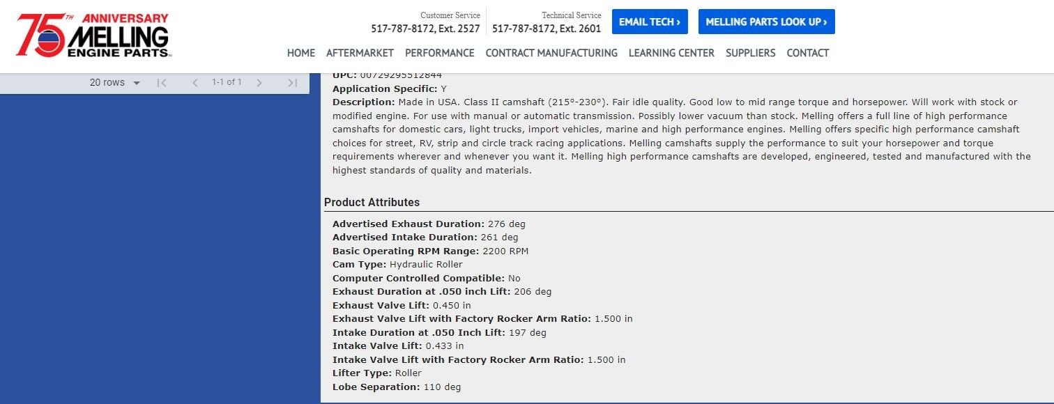The one thing that bugs me about the GM cam is the advertised duration. Has it been covered where that spec comes from? (Probably but I can be forgetful at times). As in what lift point? It must be zero I would think as compared to .004" for Melling and .006" for COMP. And even with 1.6 rockers, it's still a little lame on the intake lift.