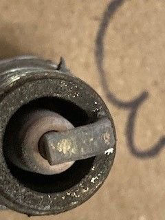 These plugs came out of a 500 hp small block with EFI. Notice after miles of cruising around, not at WOT they are white and ashy too. Plug reading is largely irrelevant unless you stomp on it up to speed, put it in neutral, shut it off, then immediately pull the plugs.