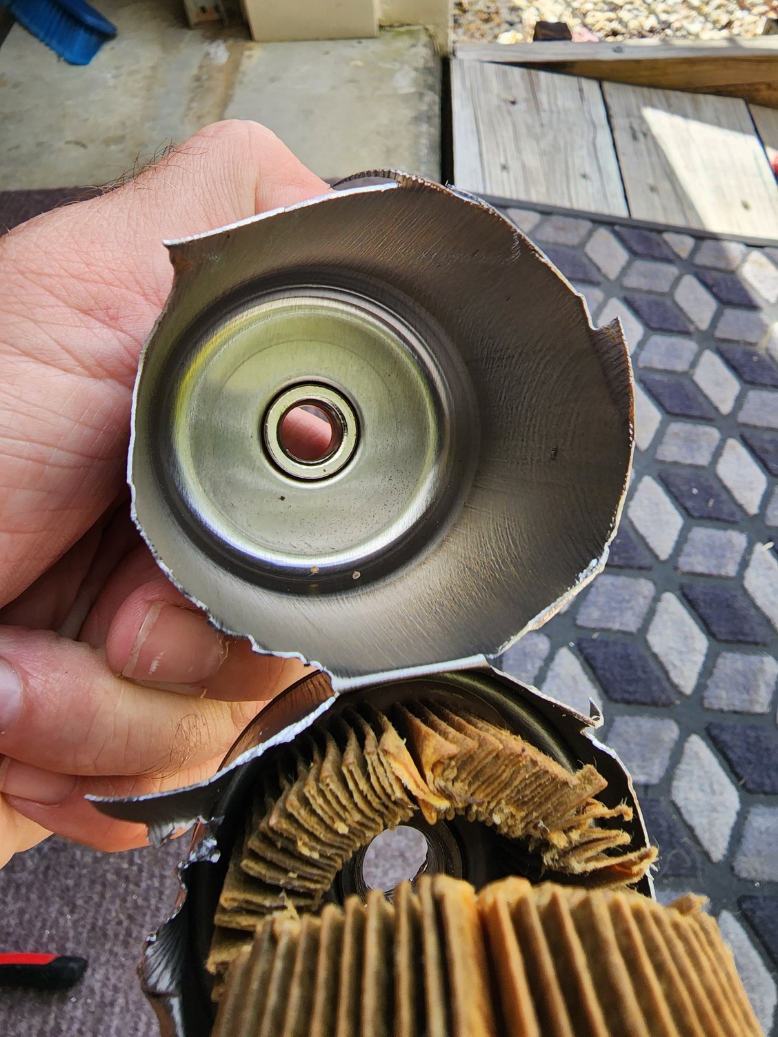 Here are some photos of the diaphragm when I took it out, looks like there is debris on the top piece of it, it was accompanied by a small amount of fuel too but it dried by the time I got my phone out, not sure if that could account for it failing or not. Some of you guys may know.