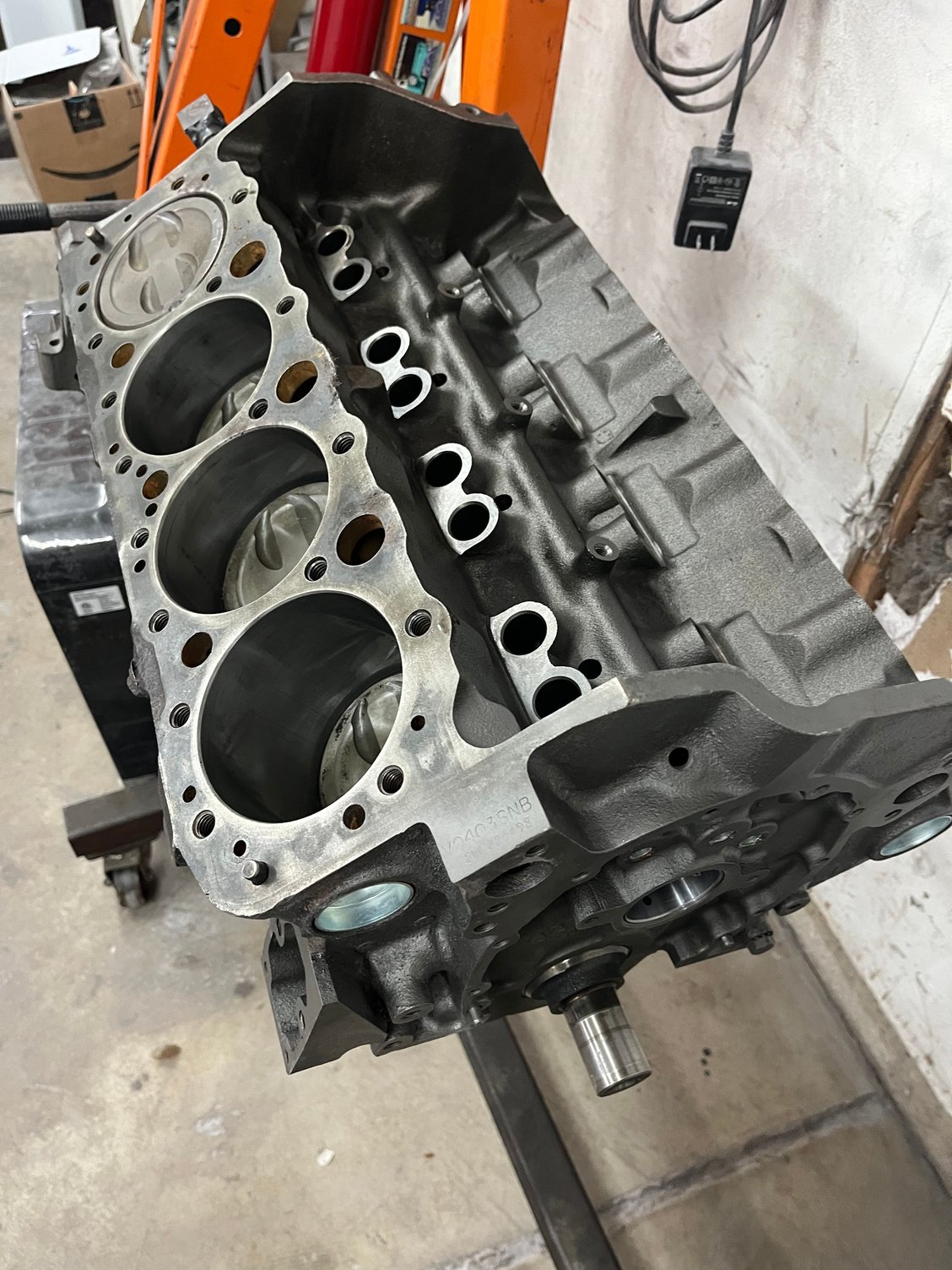 Not saying I recommend you run that,but I would be tempted to try that short block out just to see how it goes-I have ran similar in old pickups,etc with decent results The dished pistons are a performance demerit-engine probably came from a heavier capacity light truck,especially if it is 4-bolt mains.