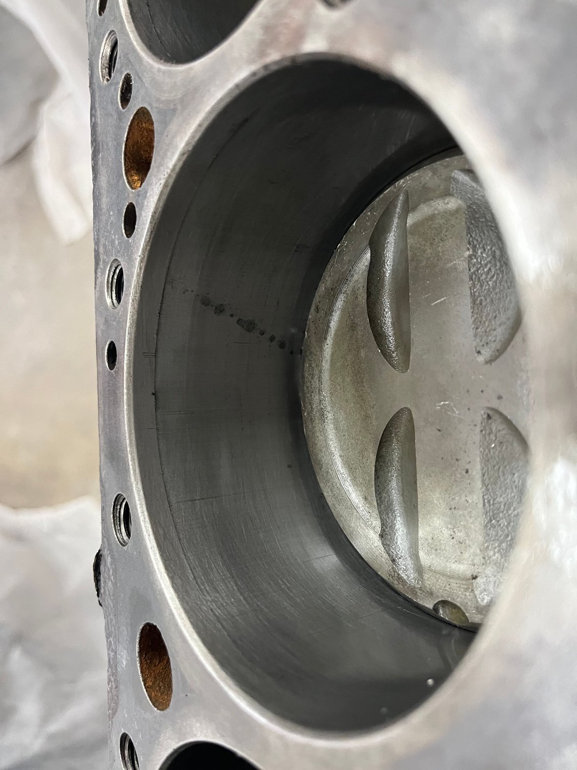 To go to the trouble and expense of pulling that engine and then leaving the cylinder walls in that condition was a mistake; block should have been bored oversize and fitted with new pistons.