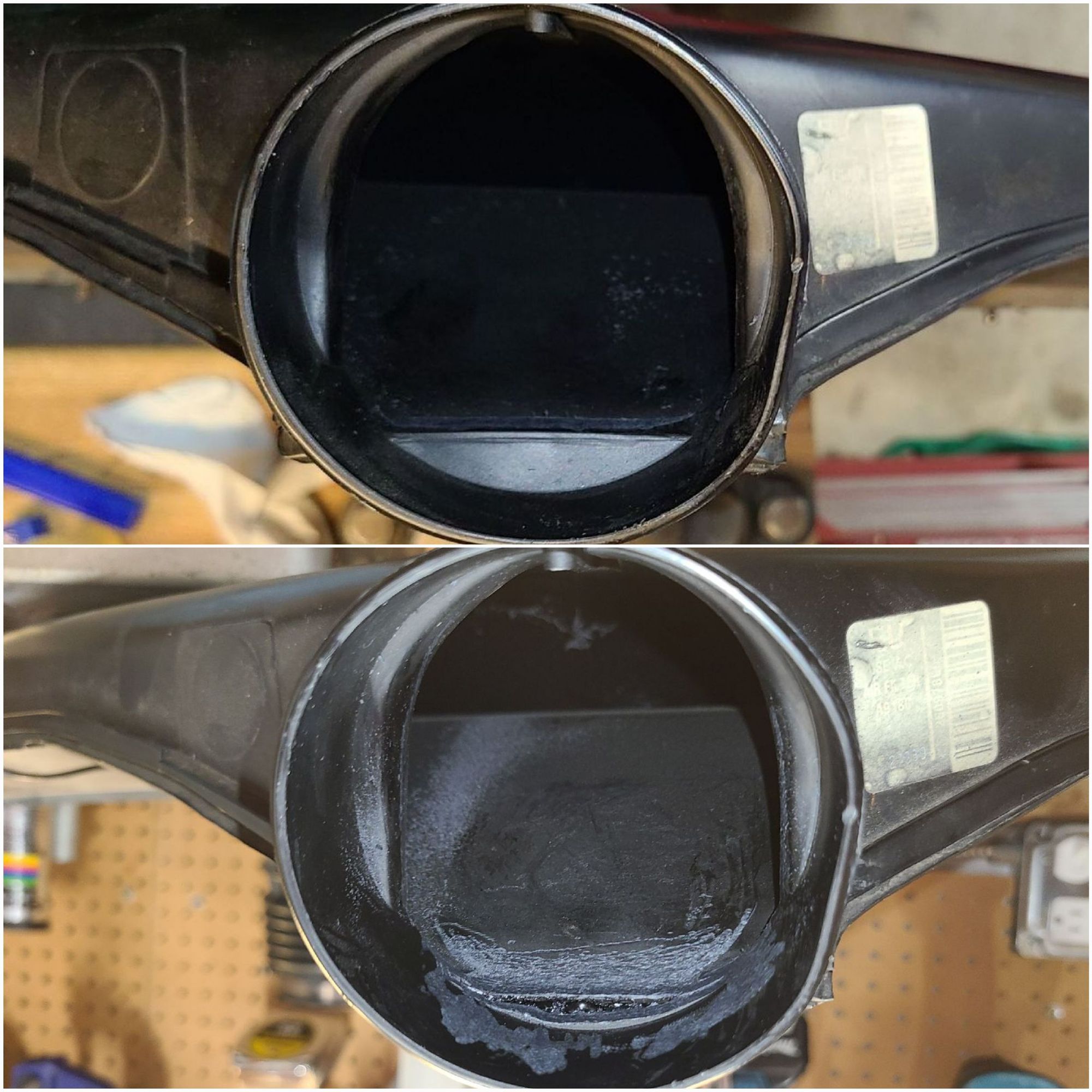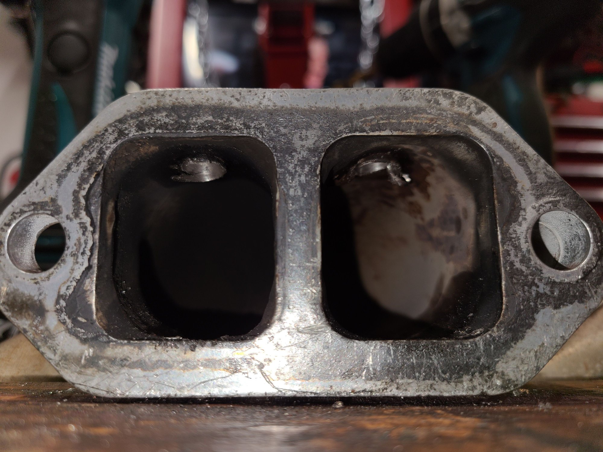 Air tube free, is the way to be. Looks cleaner alredy, just have to prep a bit more, weld up the homes then paint it. I'm thinking about doing some minor port matching too, the inside welds protrude pretty far into the tube... the felpro 1404 I have fit the AFR exhaust ports almost perfectly.
