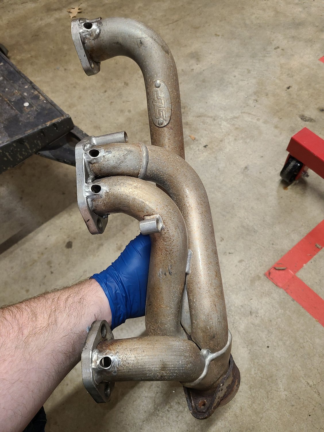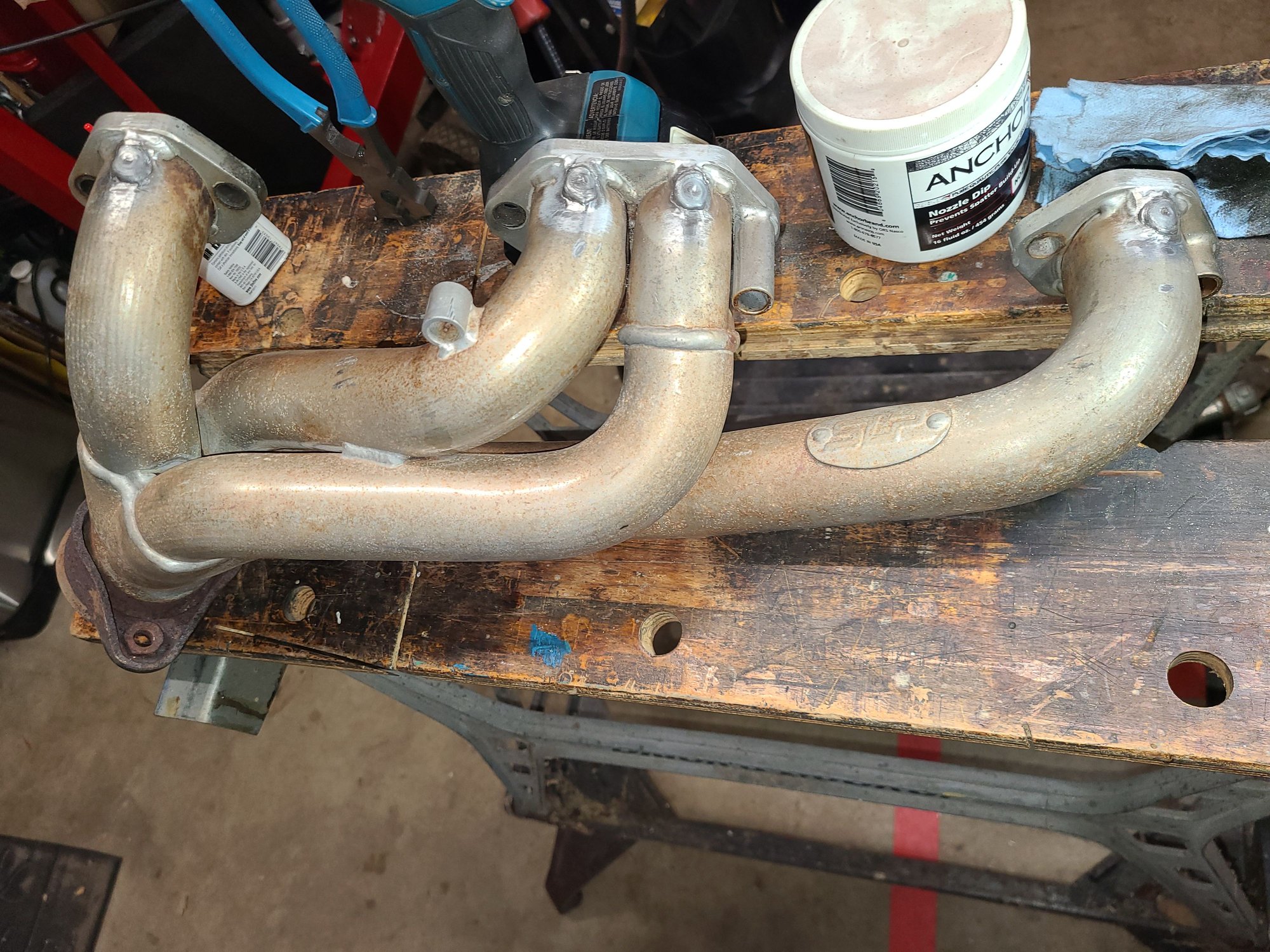 Headers are welded up, and I ground down some of the highest points on the interior welds between the tube and flange. The speed shop I had install the headers years ago had to "clearance" the drivers side header to clear the steering shaft... I think they did a lousey job of it. Think there is a way to make this look any better while I have them out, or do I just leave it, don'twant to make them any worse. I also only have a Mapp gas torch, no oxygen acetylene...