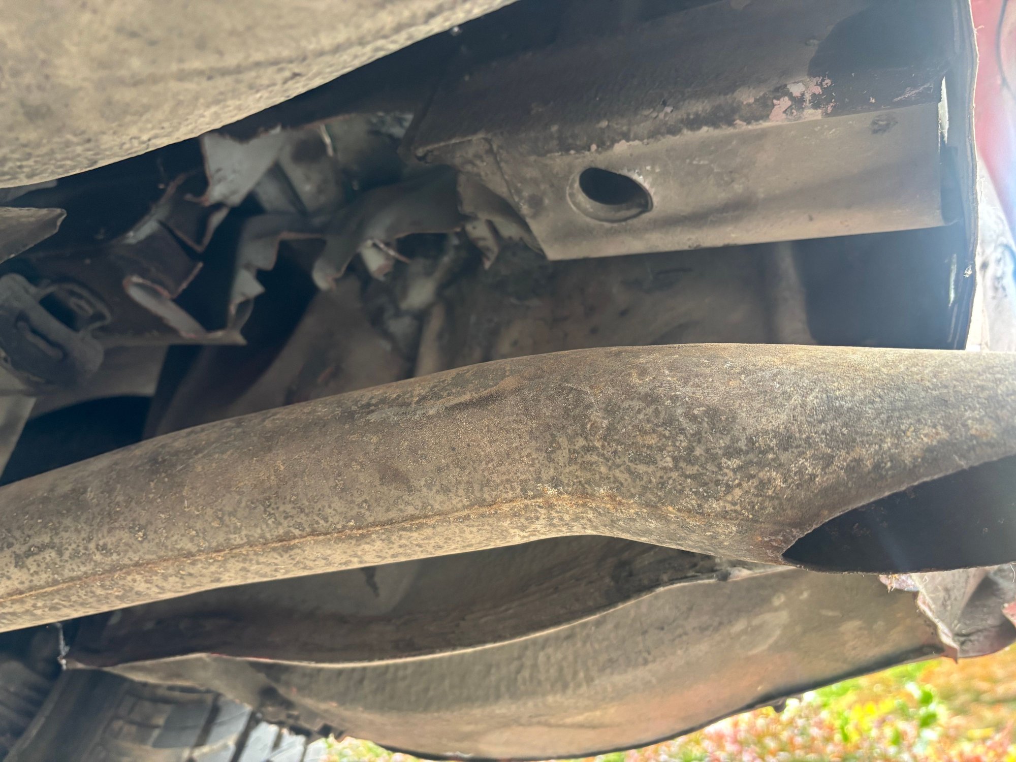 That’s the only bad news. The good news is that it’s at the very end of the frame toward the rear passenger corner right at the bumper, so it doesn’t affect the main integrity of the car. Also, we’ll be able to fix it by having a sleeve welded around it. More work than I was expecting but doable.
