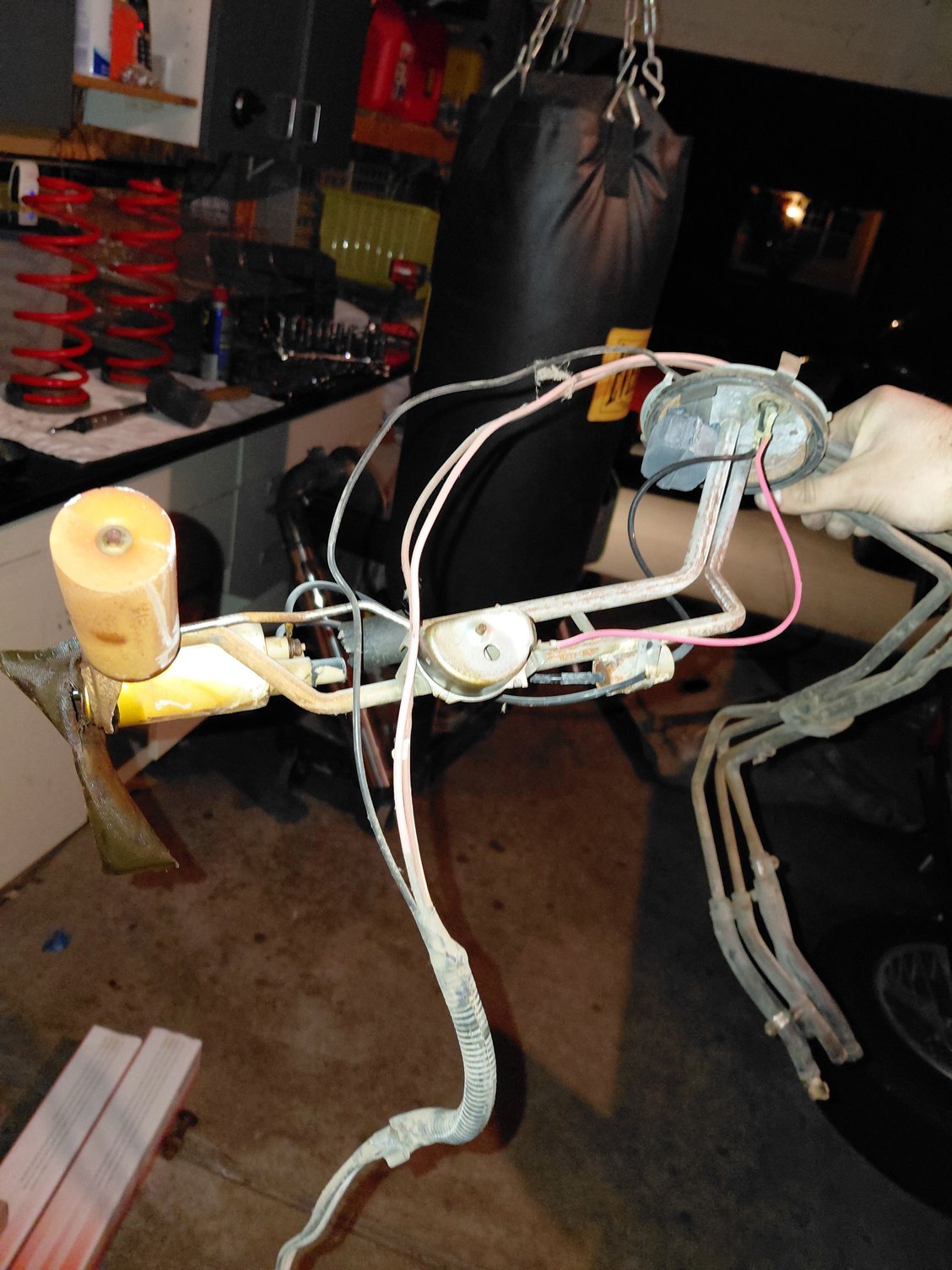 Its hard to tell without dropping the tank entirely, but I definitely see it running along the harness to the top of the sending unit along with the pink and black wires.
