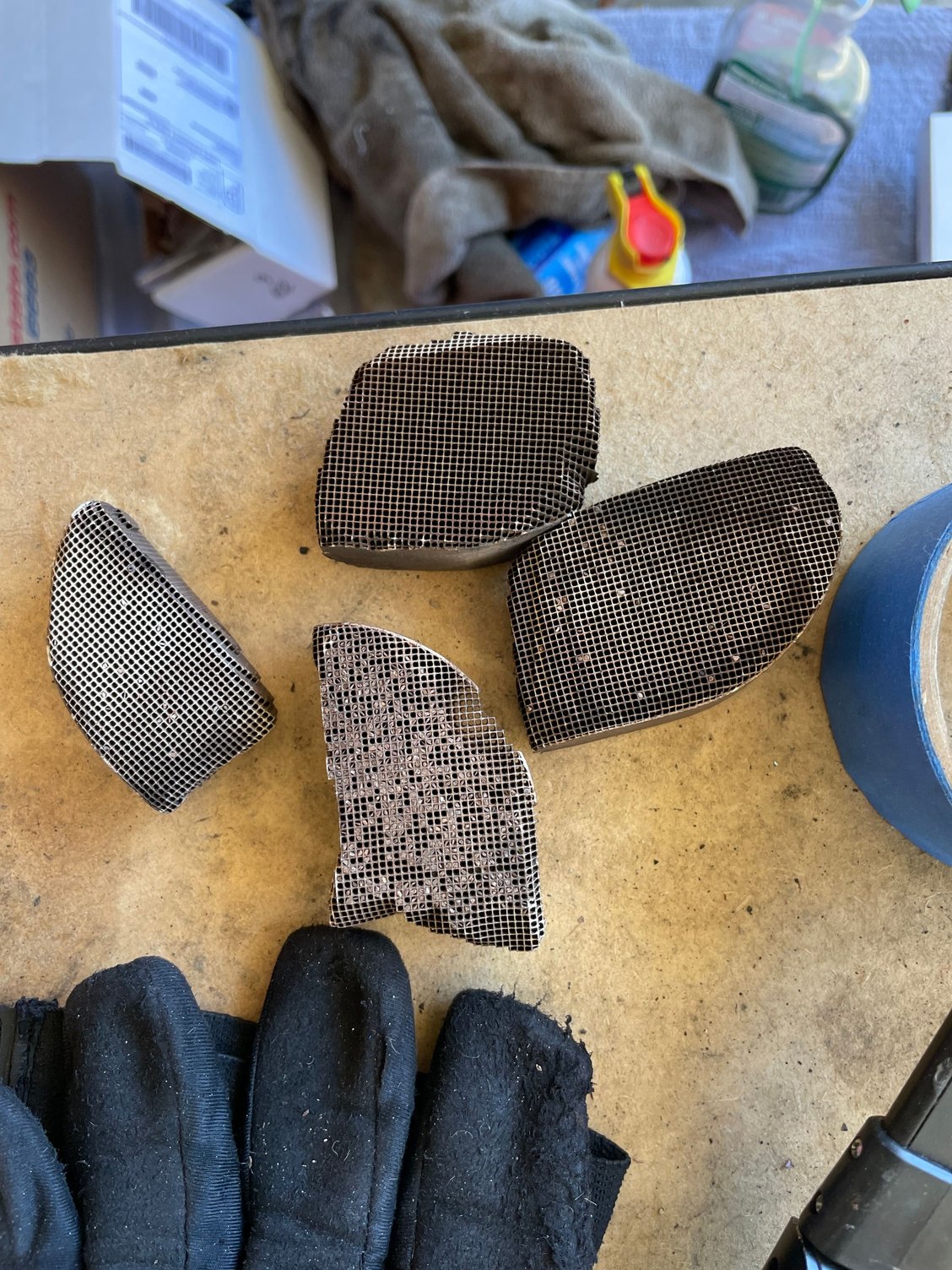 Here was my culprit of an annoying rattle in my muffler. After removing the exhaust to gain access for a fuel pump replacement, the honeycomb chunks fell out.