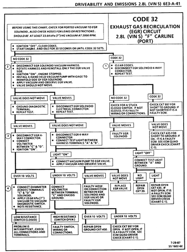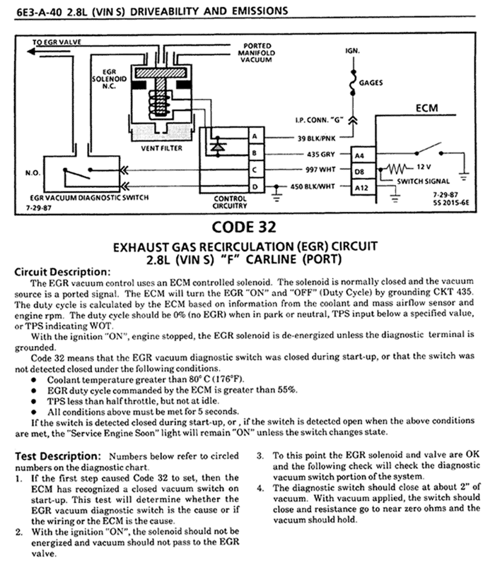 If you did a search on code 32, you'll find it's probably the most commonly occuring problem on these cars. In other words, it's a damn PITA. I know I'll be accused of heresy for this, but I fixed mine the "old school" way and just plucked the service engine bulb out. My cars runs perfectly fine even though it throws the egr code once in a while, so I figured what's the difference? BTW, I did this as a last resort after replacing the egr valve, checking the solenoid, vacuum lines, etc. Probably the only other way to fix it on my car would be to remove the intake manifold and clean out all the egr passages. I decided plucking the bulb was way easier than removing the intake manifold!