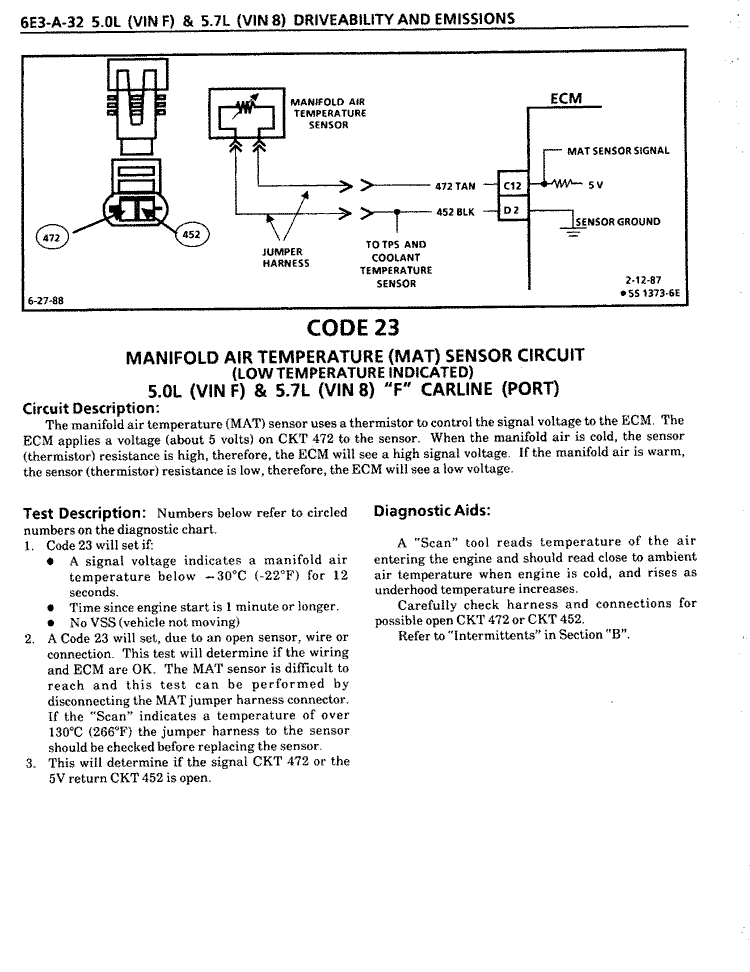 well i got a SES light while driving yesterday so i pulled over to see if it was something serious. i turned off the car, got out checked everything.. looked good. so i turn the car back on and the light is off now. didnt really think much of it, just wanted to get home at this point. so i get home and check the codes and i have a code 23 which is manifold air temperature sensor. the book i have says it means.... "Poor electrical connection, open or short in circuit; ;defective MAT sensor; defective ECM. i really hope its not a defective ECM, but how can i go about checking these things to see what exactly the problem is? thanks!