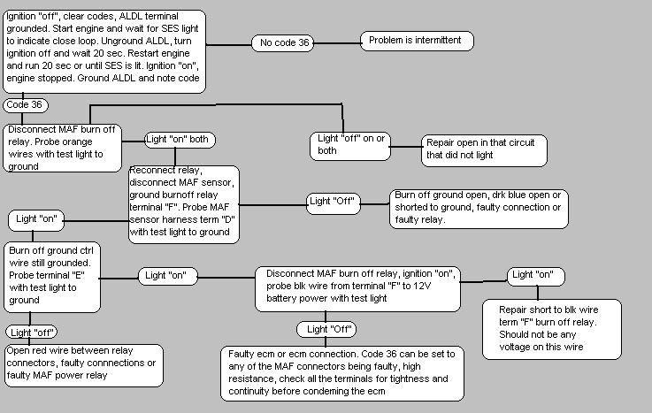 So this week a I replaced the MAF. Every road led me to it. Before I replaced it, it started throwing a code 36, EVERY time it was reset, ran to closed loop, and shut off. Replacing the MAF did nothing. The wire that goes from the burn off relay to the MAF connector was pretty crusty at the relay end of things, so I cut it back and crimped on a new terminal. Then I did the flow chart for code 36. Everything is literally perfect. The ECM is not grounding D12. I replaced the quad driver just for the heck of it. No change. I probed the pin that tells the quad driver to drive that channel. It's not even being commanded to turn on that channel. So I got another ECM. Same crap. Yesterday I read that the park/neutral switch needs to be telling the ECM that it's in either park or neutral. That switch was kind of flaky, so I took it apart and cleaned the contacts. Still nothing. There is also no voltage on pin B2 (fuel pump signal) to stop the burn off from happening. The car has been running like complete crap. Stuttering, misfiring, and jerking violently. It's getting worse every day, and worse with heat. Today it even stayed running after I turned it off. Okay, so if I need new injectors, I can replace them. No big deal there. What does that even have to do with the fact that the ECM isn't even attempting MAF burn off? Can someone please help me?