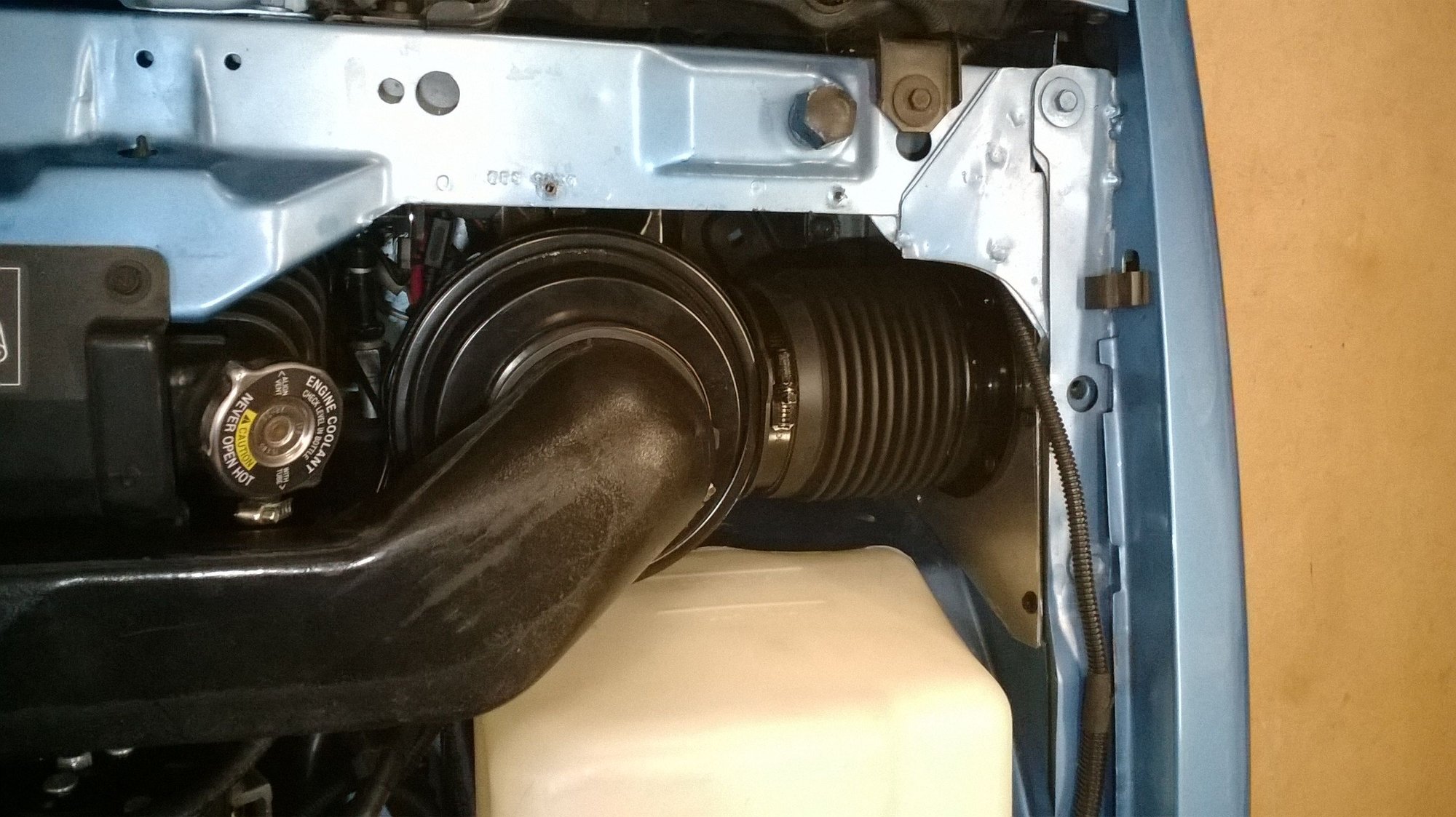 FWIW, this is what I finished with. I insulated the filter housing with 1/8-inch foam and then overlaid aluminum heat reflective film. Definitely lowered intake air temperature. And I'm sure there's no longer any restriction.