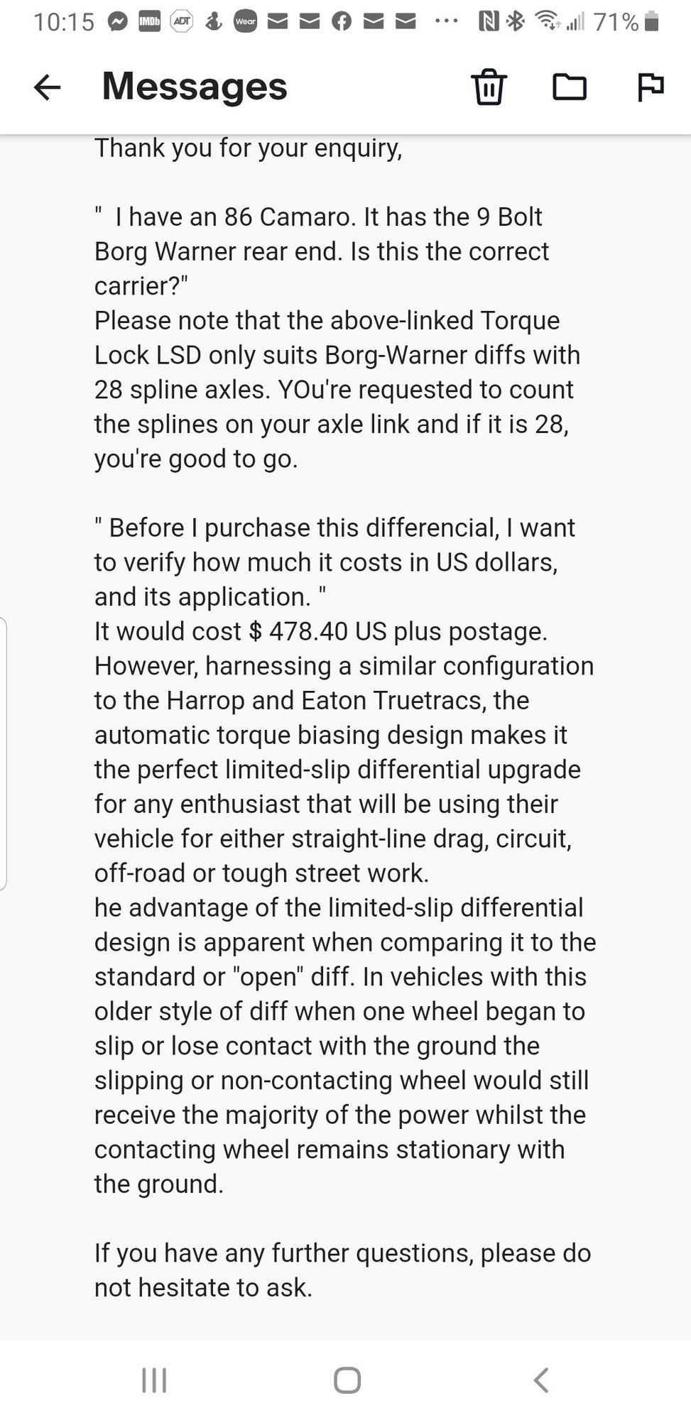 Mine is excellent. And cost was very reasonable. I've experienced the cone type and the Torsen and I wouldn't consider going back. And if you take a poll of people that have driven both, no one would choose the Auburn.