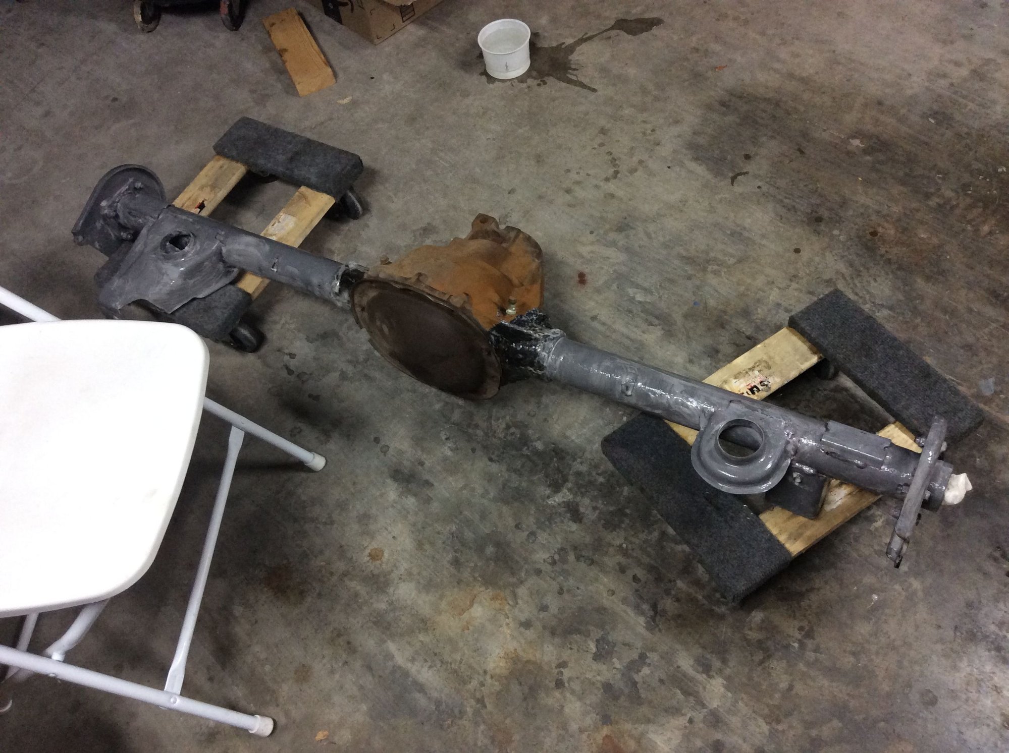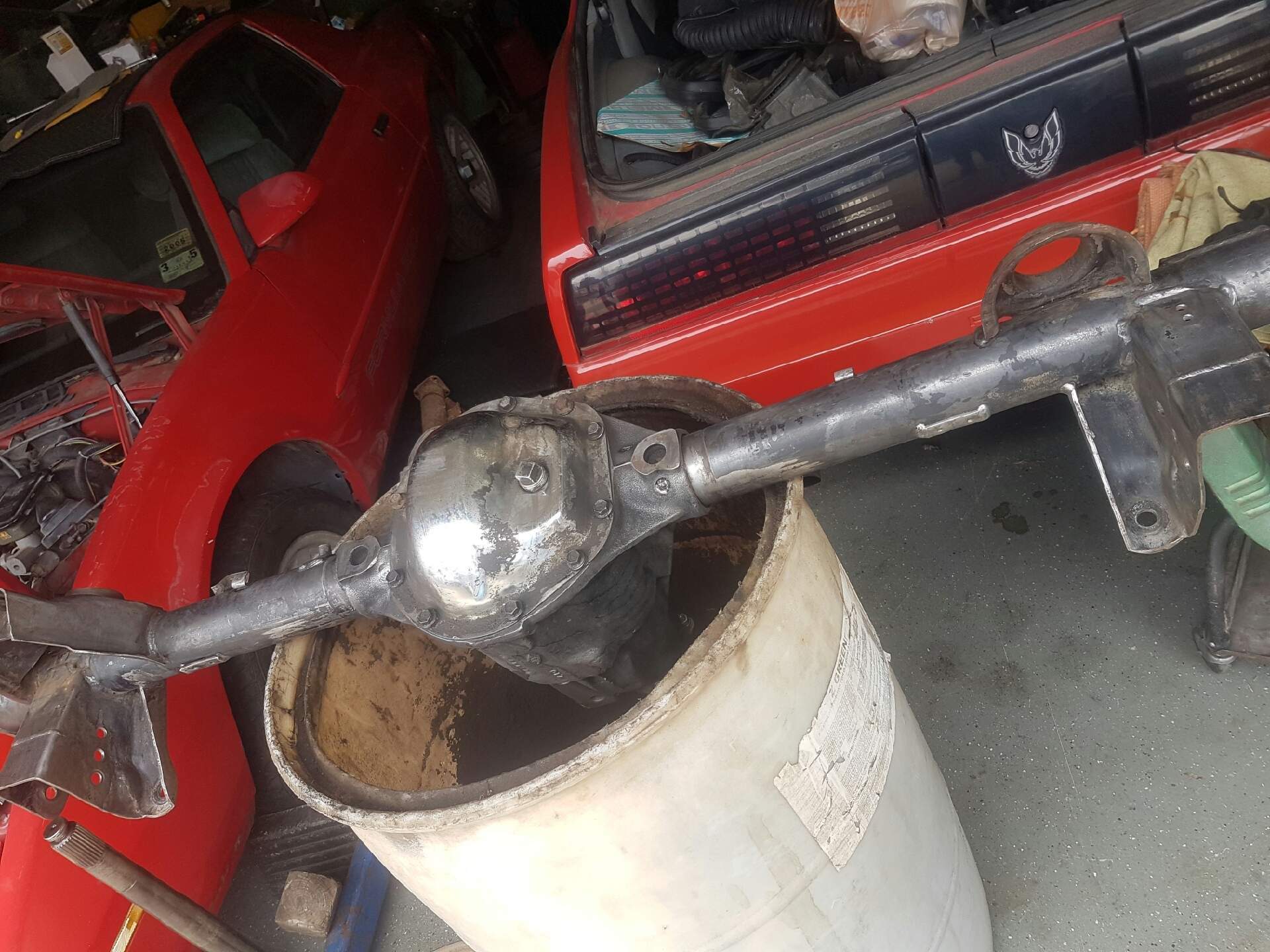 years ago I used to support rears with jack stands but one of my knees complained alot one day and decided that I need to stand up so the drum was a good cheap solution, it also catches alot of the crud that scrapes off, and its actually easier to move drum and rear around and back into my shop - sliding it versus lifting Up and down. Alot is my age when I was in my 30s it didn't affect me much and now 60 is around the corner, I have to respect I'm not the animal I used to be
