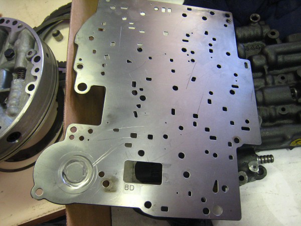 The separator plate orifices for 3rd feed, 3rd exhaust, and band release (#44) all need to be drilled/ sized in a relationship to one another for 2-3 shift timing and 3-4 clutch life.