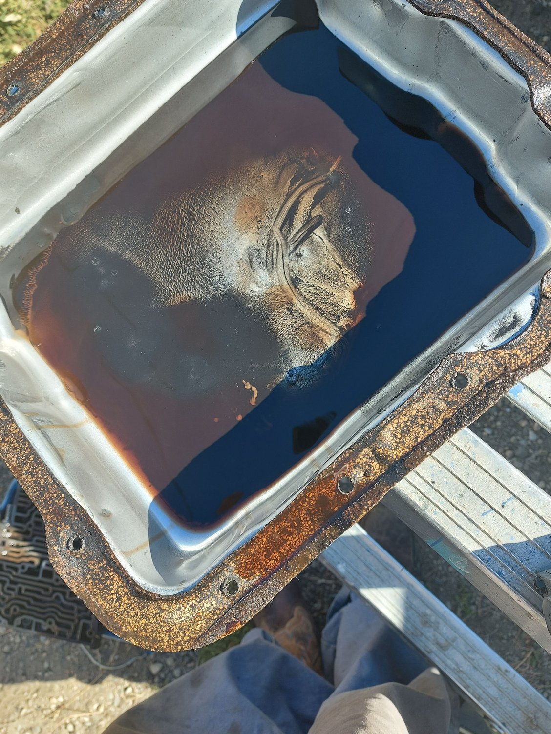 The oil is dirty in the pan was real dirty even though I just changed it 5 months ago pics posted of the crack and my oil. Would appreciate any input thanks alot!
