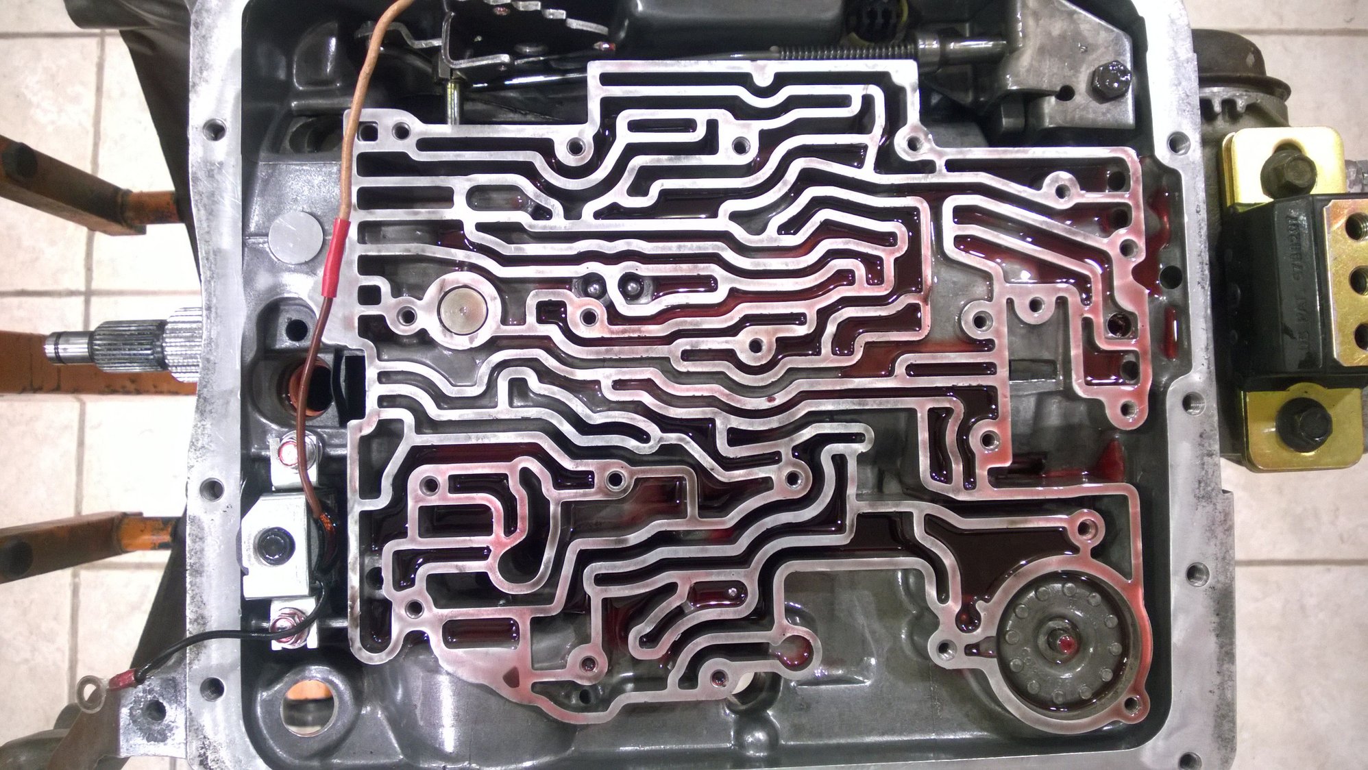 Can someone figure out from the pictures if it actually has a modified valve body? From the transmission code it should be an 1988 model.